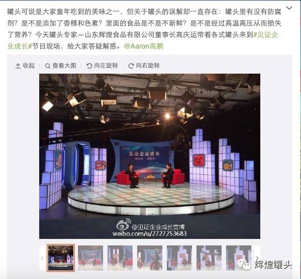 20141223日山東輝煌食品有限公司董事長(zhǎng)高慶運(yùn)先生,作為罐頭行業(yè)的專家, 應(yīng)邀參加CCTV“見(jiàn)證企業(yè)成長(zhǎng)”欄目,為消費(fèi)者解讀罐頭